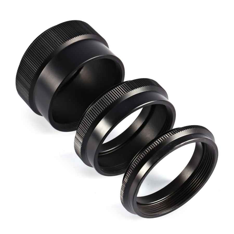 Drei manuelle Zwischenringe auf Metall für extreme Makroaufnahmen mit jedem zur Kamera passenden Objektiv.