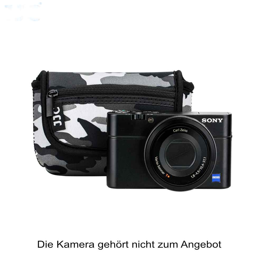 Kameratasche Camouflage JCC OC-R1YGR Grau. Stilvolle Kompaktkamera-Tasche von JJC. Weiches, stabiles Neopren schützt Ihre Kamera wirkungsvoll. G7X III, G7X II, G7X, G9X, G9X II, G9X III, SX-720. Sony RX100 I-VIII, und viele andere.